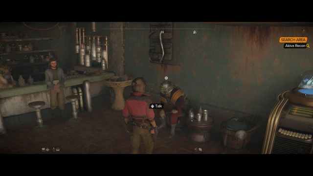 The Ashiga Scout can be found in the Sashin Cantina, sitting next to the jukebox. The image below shows the location of the cantina in Sashin.