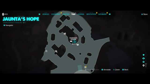 The Ashiga Scout for the Tosharan Recon can be found at the Daruda Diner in Juanta’s Hope, a small city in the Grazing Fields region of Toshara. Below is the exact location of the diner from the in-game map. The good news is that Juanta’s Hope is very small, so it shouldn’t be hard to find.