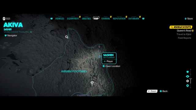 The Ashiga Scout for Akiva Recon is a bit more difficult to find since it’s possible you haven’t discovered the location quite yet. Atleast, I hadn’t found it yet in my playthrough. You’ll need to head to Sashin, a small settlement in the northern parts of the Kababa Foothills of Akiva.