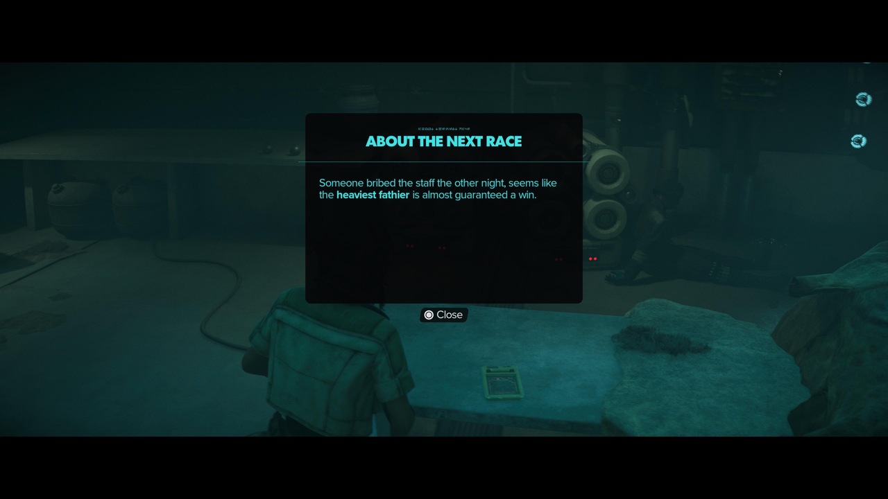 If you’d rather do things the legit way, then there are ways to guarantee a victory when betting on Fathier races in Star Wars Outlaws. When exploring cities and outposts, you may come across data pads that contain information about rigged Fathier races. When you find one of these, make a note of which Fathier is going to win. It’ll usually say the smallest, the oldest, or some other descriptor that you can look for when browsing the list of Fathiers at a race.