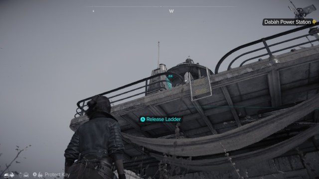 Fortunately, the solution is simple. Stand by the locked ladder outside, located on the backside of the building away from the road, and send Nix to the control panel next to it. Nix will release the ladder which you can climb to claim your prize.