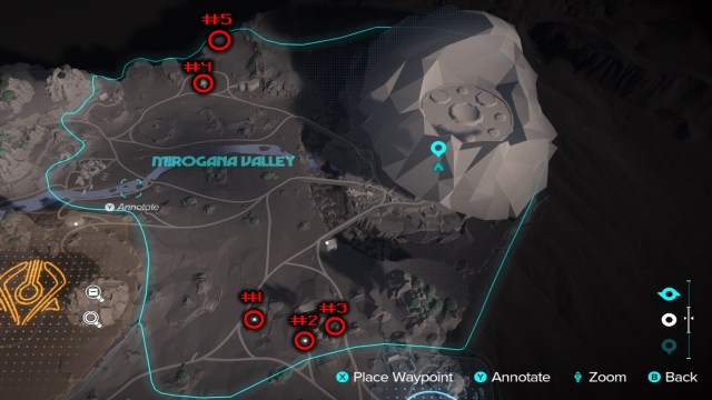 Five treasures are up for grabs in Mirogana Valley, and the toughest part of your task is finding them. You must be in close proximity for them to show up on your map, and they are easy to miss.