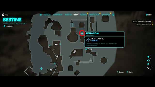 Before you can start raiding Overgrown Vaults and the like, you need to grab some useful intel on prime locations. The data as well as the eventual location for the camp is located on Tatooine. You want to travel to the Imperial-run city of Bestine and talk to the Hutt cartel vendor in the center of town.