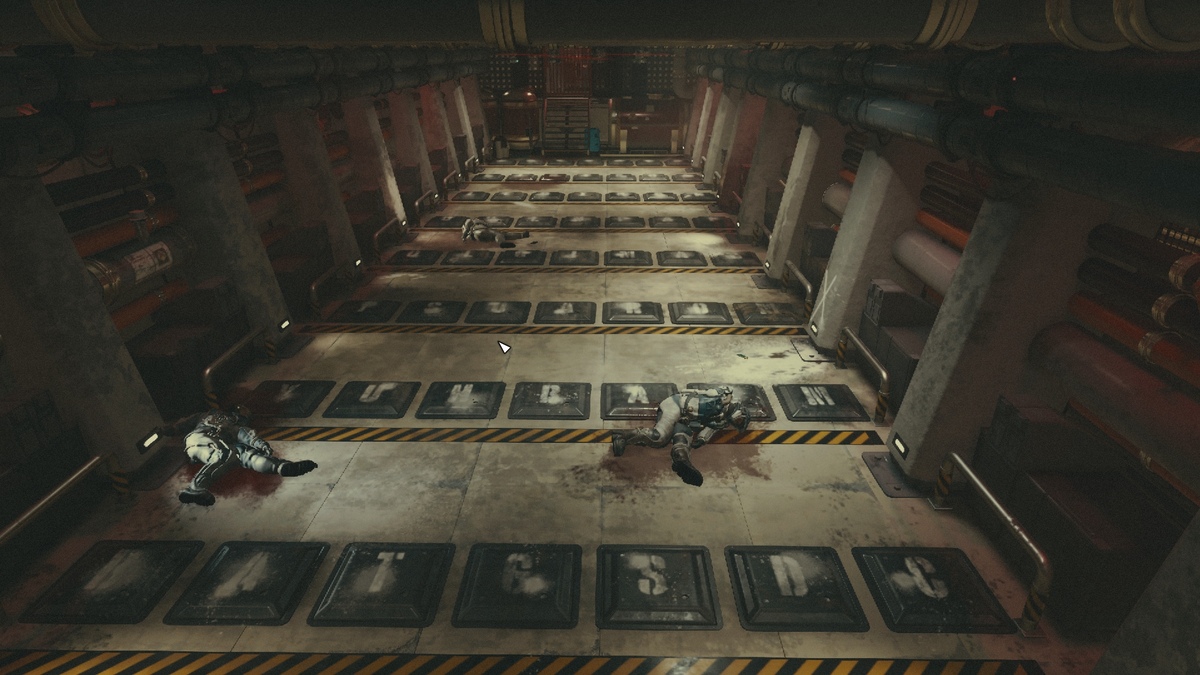 You must spell “Tyrannis” by stepping on one letter in each row to get through the traps during the Starfield Mantis mission. If you fail to step on the correct letter, you will be quickly gunned down by the overhead turrets. I recommend telling your active companion to “wait here a moment” because they will step on the wrong letter when they try to follow and set off the trap.
