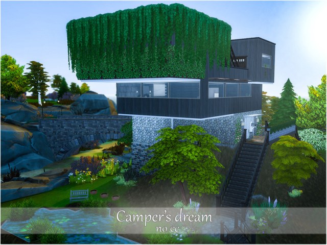 Greenland is a house build for an eco-friendly family. It has two bedrooms, and each window boasts a green view, with plants, trees, or simply some landscaped edging coming up to the side. Of course the house has a pool, but it might not be as eco-friendly as you want it to be — certainly compared to some of the other houses on this list. Still, this is a great starting home if you want to play with a family of Sims, not just one or two.