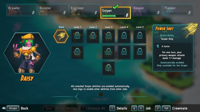 There are a lot of small yet impactful systems at play here, and they all work in tandem. The gameplay loop hooked me right away: Uncover more ocean, complete a mission, earn swag, spend or use swag, then rest up to continue the cycle the next day. It has yet to get boring and I wonder if this cycle will change at all or if it’ll stay the same throughout the entirety of SteamWorld Heist 2.
