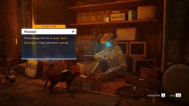 To get the Poncho item in Stray, simply exchange the Super Spirit Detergent with Azooz to receive the Electric Cable.