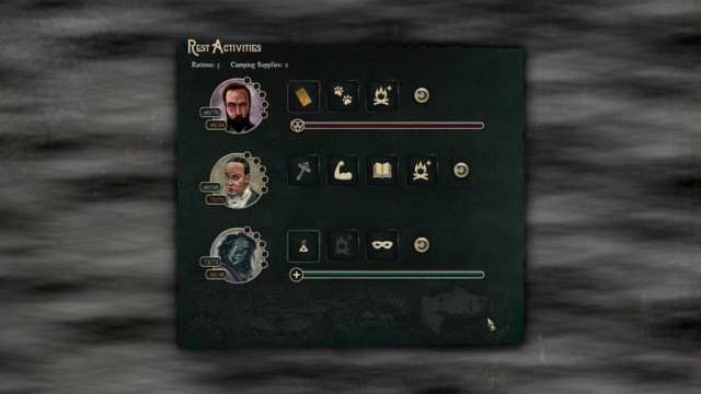 However, as far as I’m aware of it, the soft skills (read: anything non-combat) of your companions don’t matter while exploring. You can’t boost your own eloquence with a silver-tongued NPC, nor can they help you craft new things. Those skills start mattering a lot more, however, when you go to rest. And you will need to rest. Left to their own devices, a character will eventually get exhausted, incurring a stat penalty. Under your control, a character will inevitably get hurt and see their sanity strained. Those are commonly agreed to be bad things.