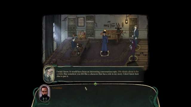 But Stygian: Reign of the Old Ones is set in the 1920s, and the setting is lovingly recreated in lavish details (and described in great prose). The environments are as beautiful as they are evocative, and even the simple 2D character animations look great. What’s more, selecting a character portrait in the game actually affects the way your avatar looks! All in all, I have little to no criticism of the visual or the audio parts of the game.