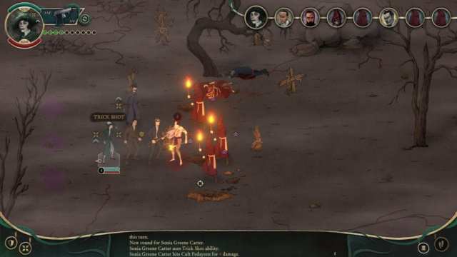 Stygian: Reign of the Old Ones is a 2D RPG with turn-based, hex-grid combat. Most of the time, you mosey around Arkham and its environments by directing your character with mouse clicks, just like in the Fallouts of old. Your companions (plot-important NPCs) and henchmen (beatstick NPCs) follow. Once you enter combat, you get to control your friends as well. Everyone takes their place in the initiative track (it is reshuffled every turn) and spends their action points doing violent stuff (or using them to boost either offense or defense).