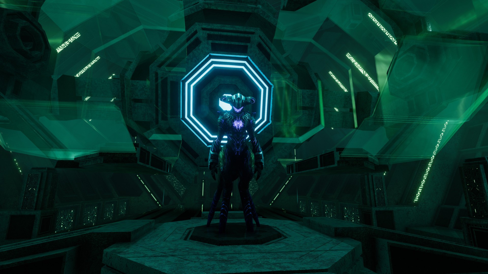 The center of the huge cavern has a doorway that you can enter to reach the Fabricator Base. You’ll see a console straight ahead and three panels to your left. The panels off to the side are where you’ll place materials that will be used to construct Al-An’s body parts: