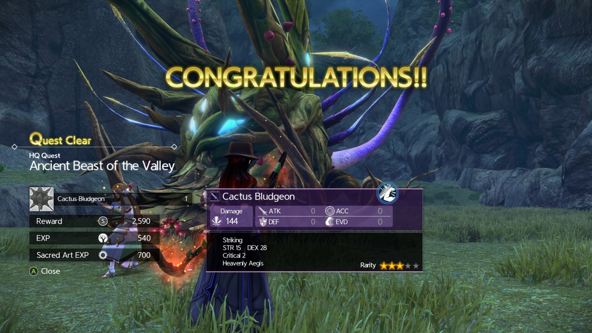 Once this Divine Beast has wilted, you’ll obtain the Cactus Bludgeon. This mace has +144 damage, +15 STR, +28 DEX, +2 Critical, and the “Heavenly Aegis” perk. This allows the team to temporarily nullify projectiles and physical damage as well as boost HP regen by 10%. Basically, it turns everyone into tanks. How cool is that?