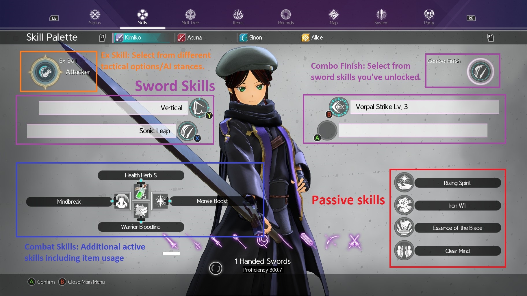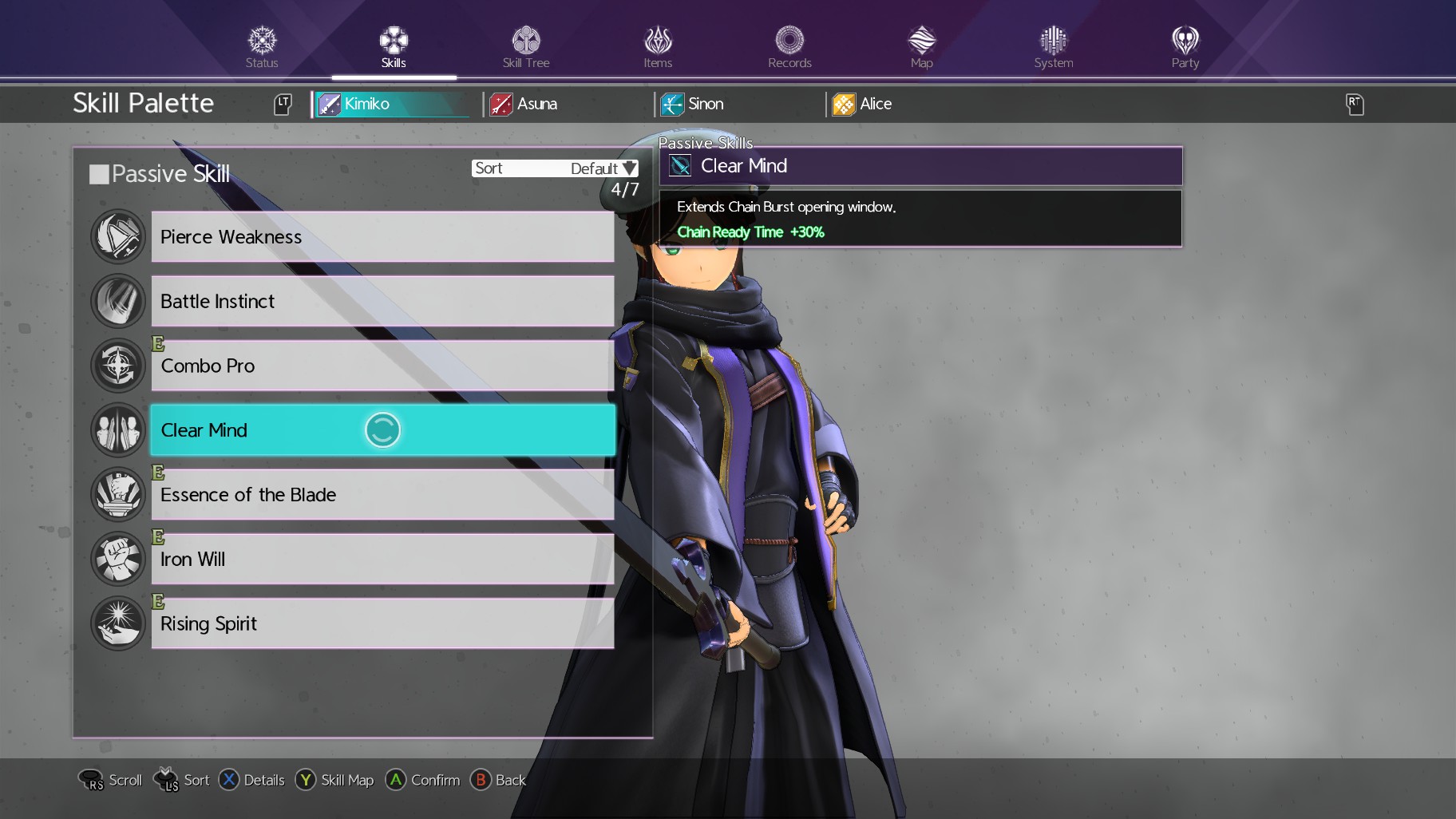 Give Kirito and your other characters access to both the “Clear Mind” and the aforementioned “Essence of the Blade” passives. These are to ensure that everyone has more time to do skill connects or chain bursts when you’re just starting out.