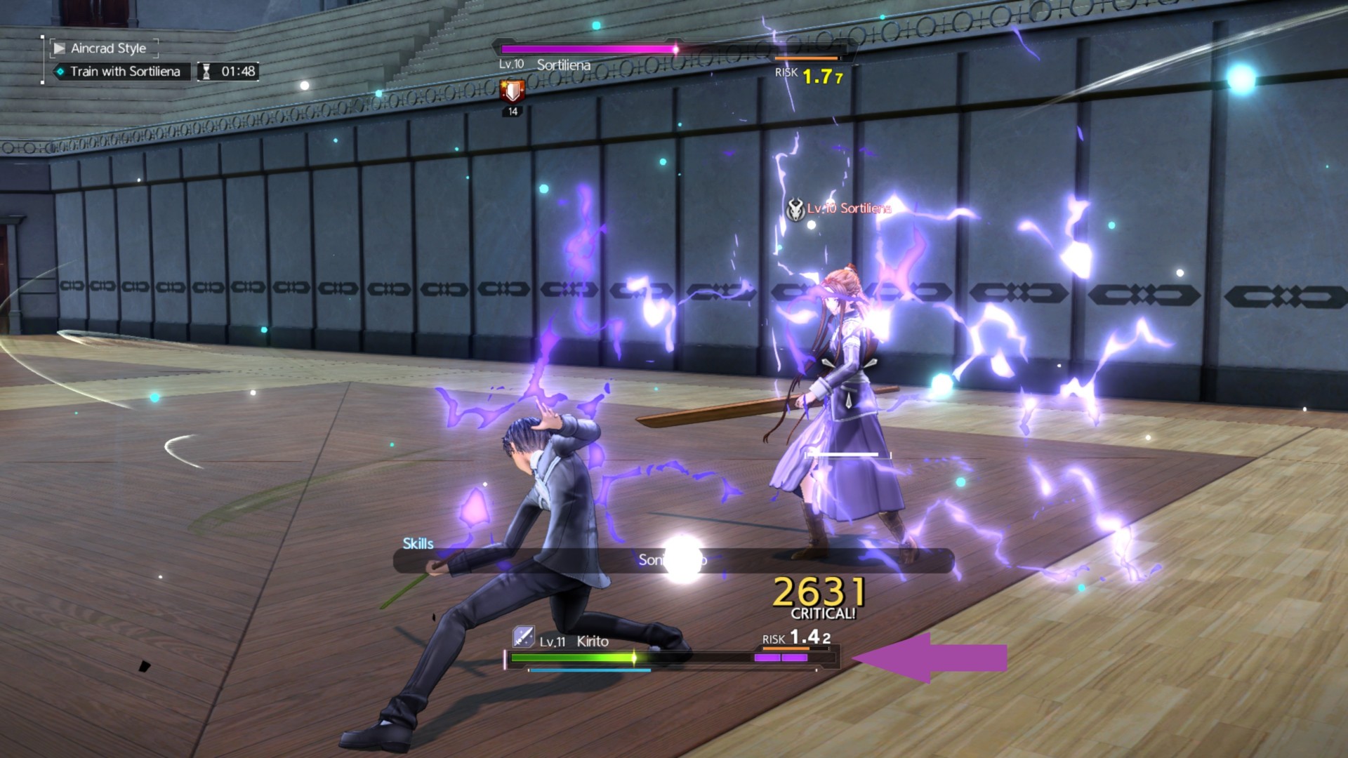 Let’s say you’ve got a couple of sword skills already as Kirito (likely Sonic Leap and Vertical), you’ll learn a bit more from the game’s training dummy and sparring matches in the first chapter.