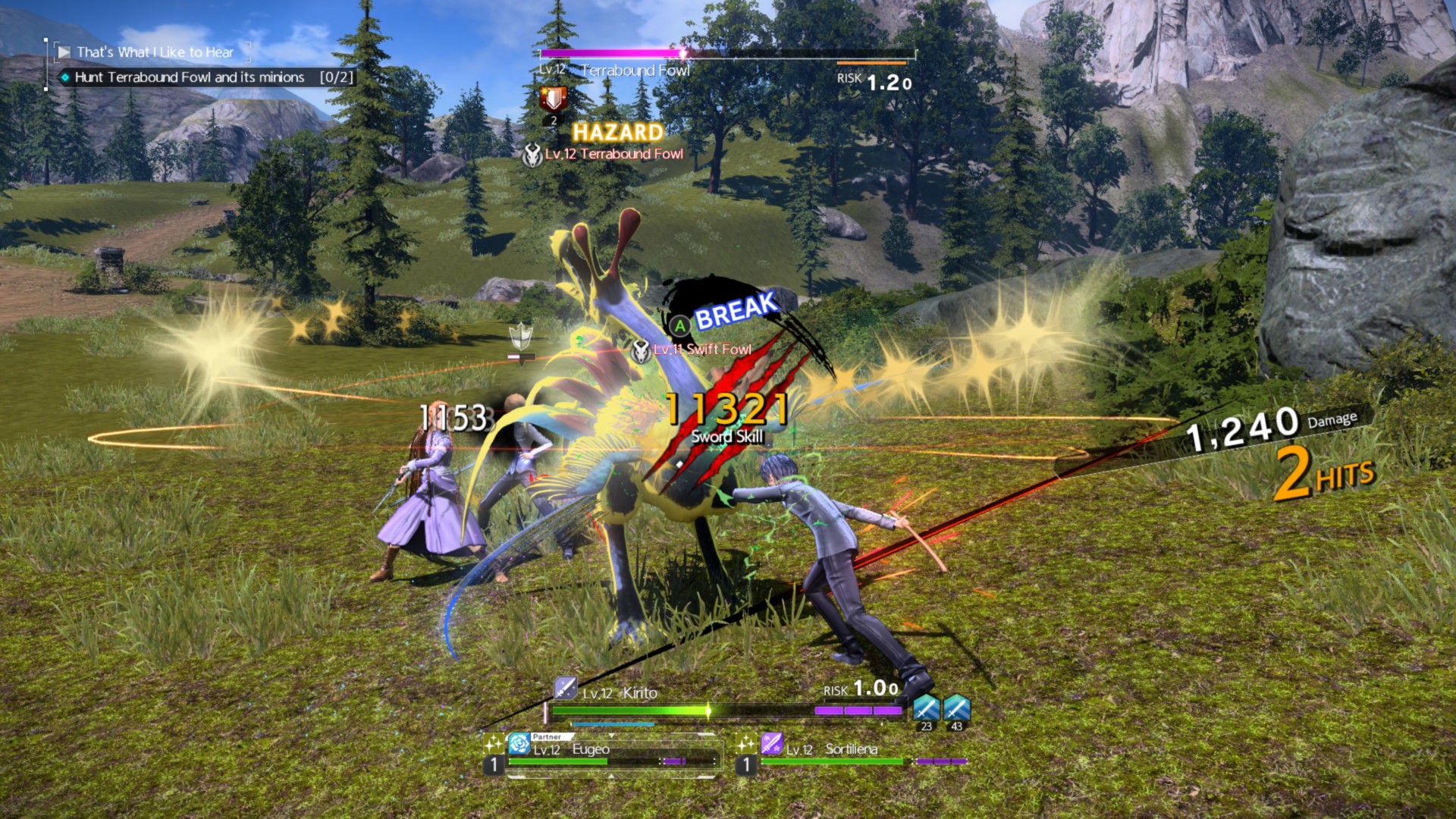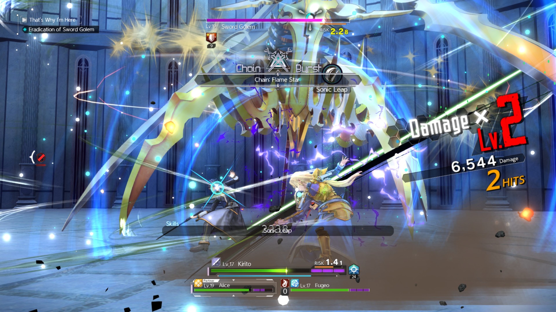 Chain bursts, however, are more complicated because they rely on (1) locking on a single target, and (2) timing your sword skill in conjunction with another character’s. For instance, if Kirito does the Sonic Leap, then you should quickly follow-up with another sword skill from, say, Eugeo or Asuna, once the ability connects.