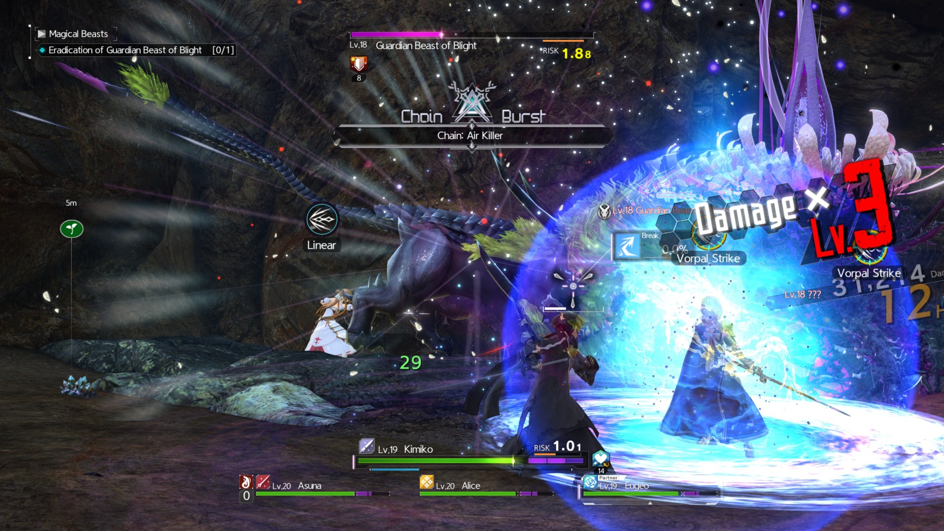- Asuna: Hold LB + X = Linear = chain burst.