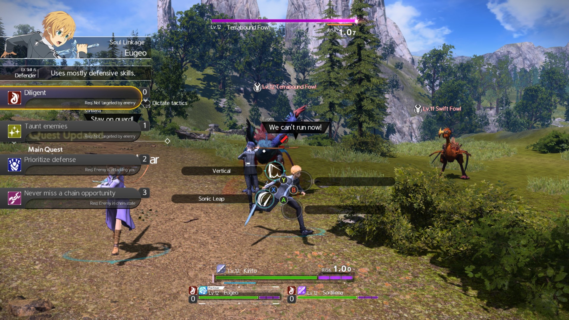 - Eugeo: Hold LB + X = another Sonic Leap = chain burst.