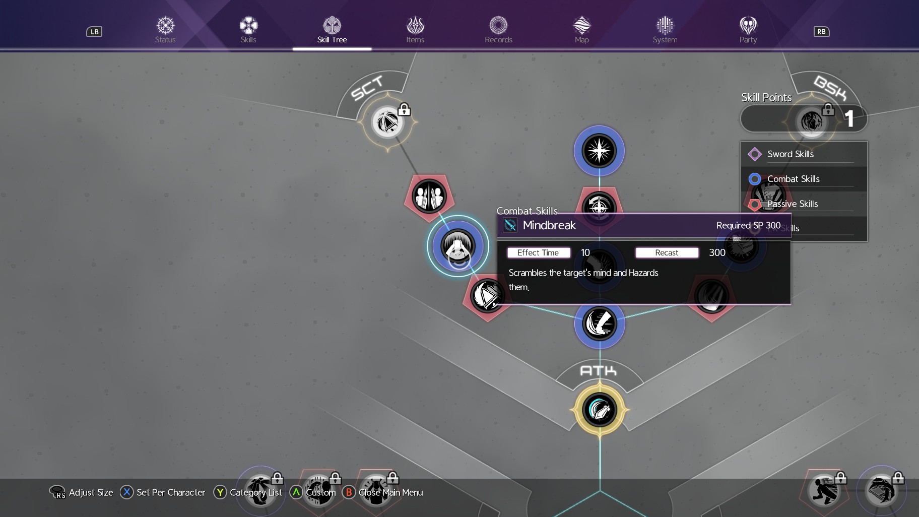 “Mind Break” is a combat skill found in the upper left section of the main skill tree heading to the Scout class. This combat skill uses up 300 SP/three bars, but it instantly puts your target in a “hazard” state. Make sure you equip that in your skills menu as well.