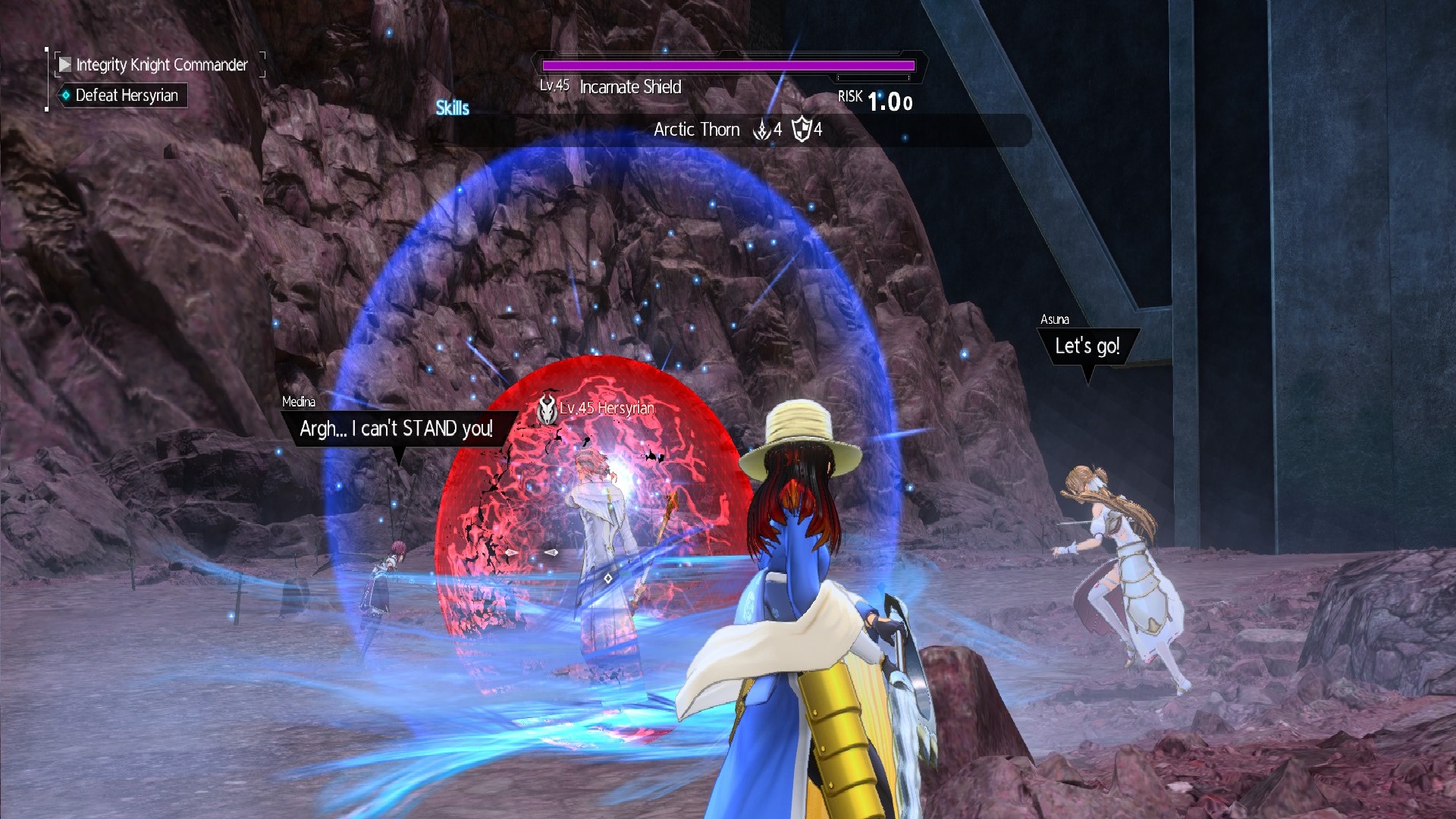 Oh, before I forget, Hersyrian will actually trap all the Integrity Knights, including Alice. If she was in your party before, then this battle against Hersyrian will only leave Kirito with two allies.