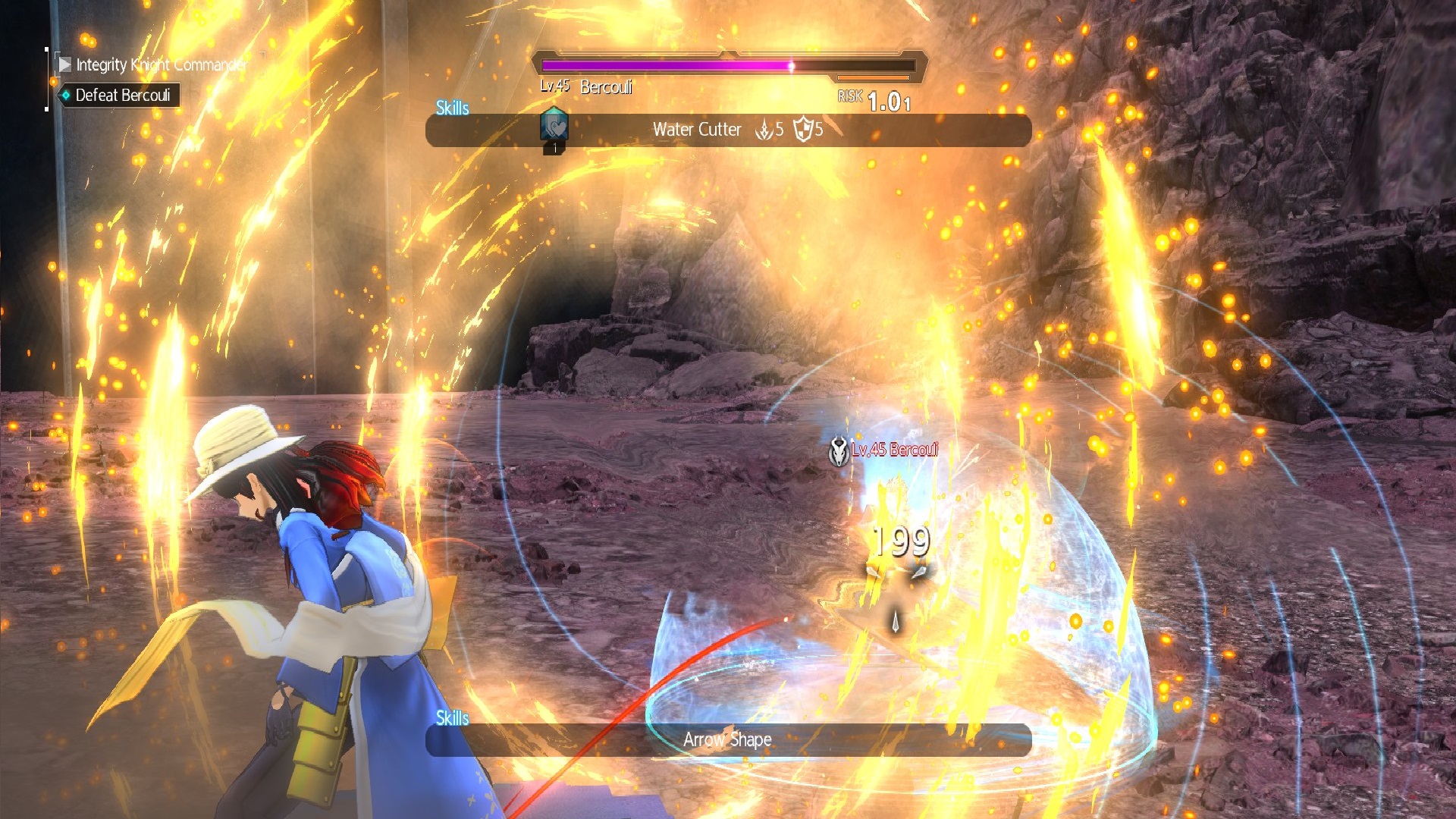 Hersyrian uses his Incarnate Shield which has its own health bar. While he has this active, he’ll also continue to fire off various Sacred Arts spells (ie. Fire – Arrow Shape and Ice – Arctic Thorn). The goal is to break the Incarnate Shield to start doing damage to Hersyrian’s own HP.