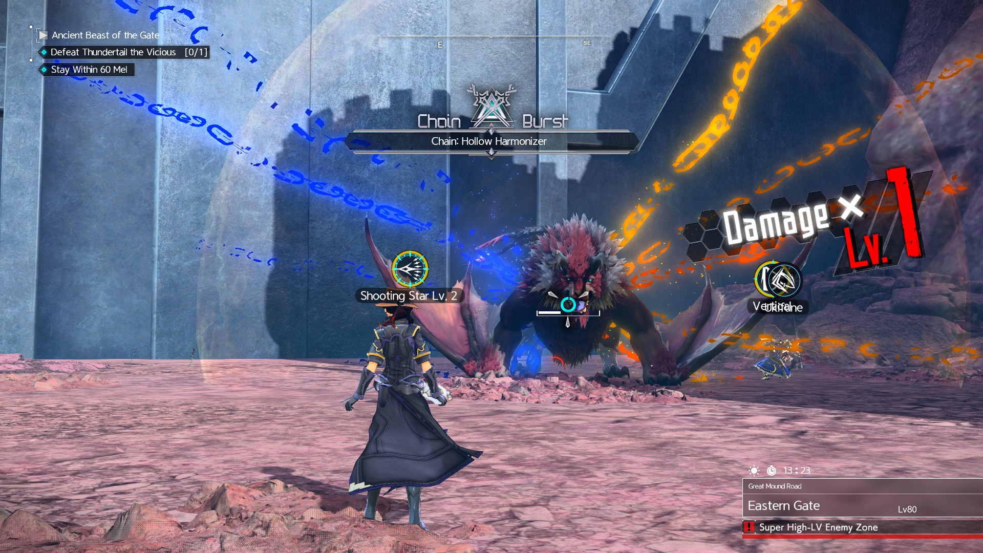 Thundertail the Sharp is a level 83 (!!!) Divine Beast that’s really annoying to fight. It’s got 13.5 million HP, and it’s quick pouncing attacks (Shadow Swirling Slash) will drop you like a bag of chips.
