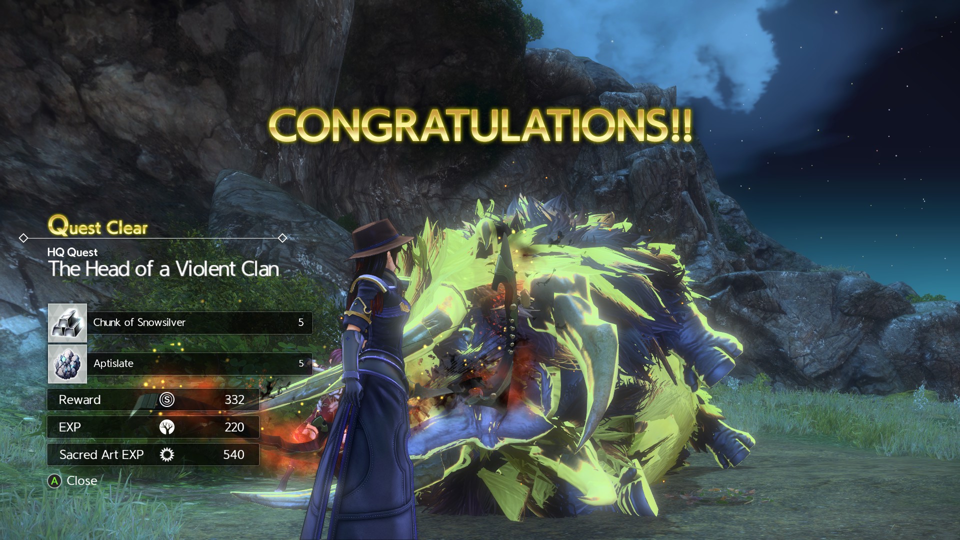 The clearing here has a level 54 Great Horn. Here are the rewards:
