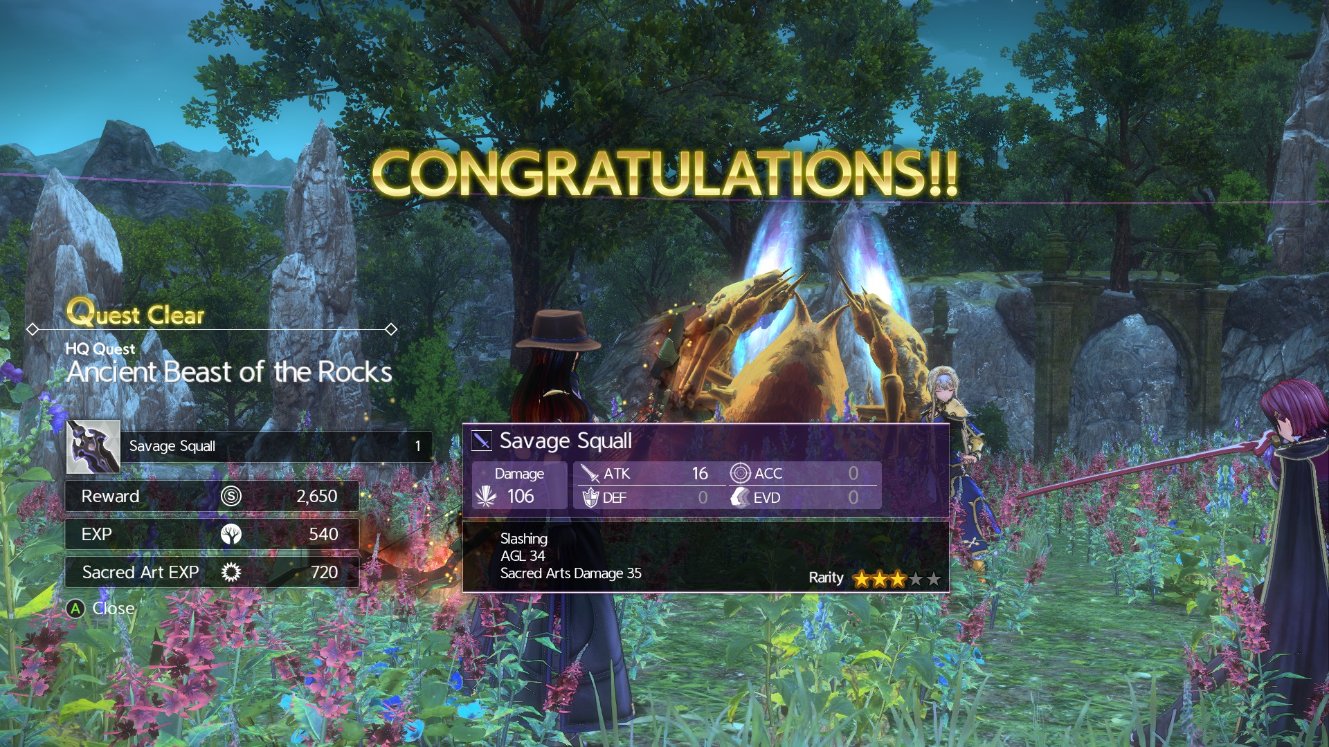 Once Flashfang the Ancient’s spider senses are no longer tingling, you’ll get the Savage Squall (1H sword). It’s got +106 damage, +16 attack, +34 AGL, and +35 Sacred Arts damage. Sadly, it doesn’t have an associated perk.