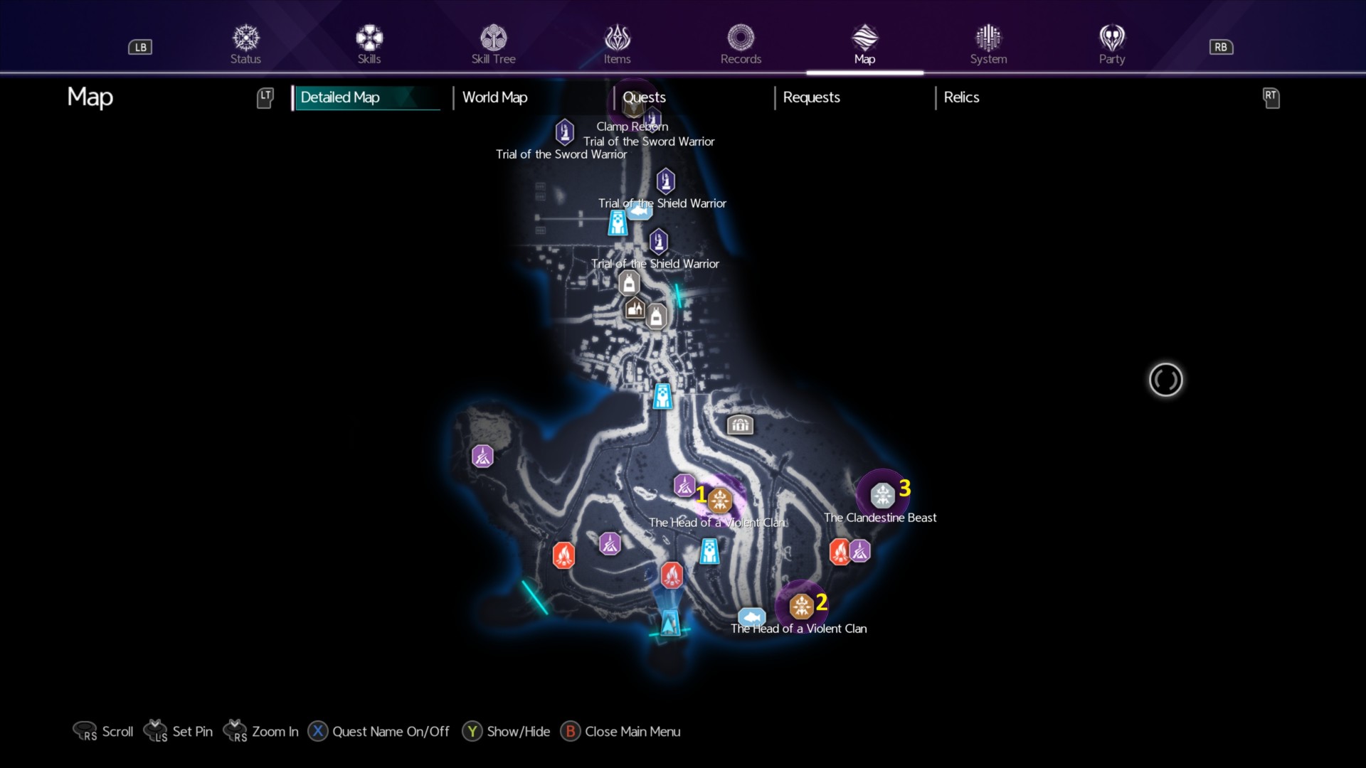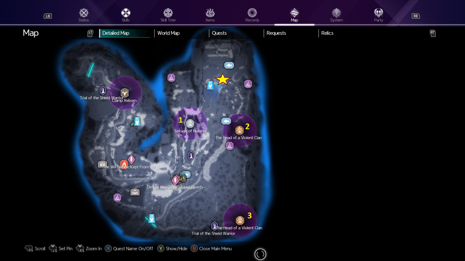 The Monolith in Rivalier Forest is found in the northeast corner of the map. This area has a savepoint (Waterfall Cave) and a lady’s statue that gives you Sacred Art (Heat Lv. 2) – Blazing Glow.