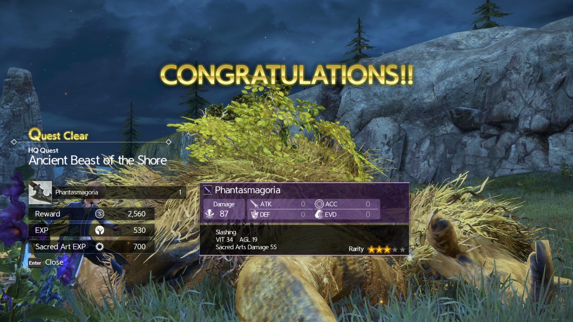 Once Greeneye the Absent is absent from this world, you’ll get the Phantasmagoria dagger. It has +87 damage, +34 VIT, +19 AGL, and +55 Sacred Arts damage.