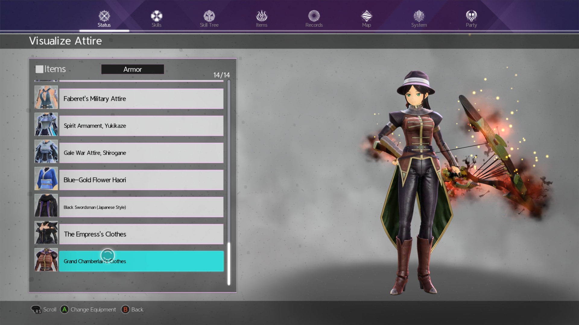 Once you’re done with all of the above, go to the Status menu -> Visualize Attire panel. You’ll see that the Empress and Grand Chamberlain costumes have been unlocked. The Empress’ Clothes can only be used by female characters (ie. Alice, Medina, Sinon, and the like); it doesn’t seem like Integrity Knights (ie. Fanatio or Sheyta) could wear this. It’s also possible for Kirito to wear this if you changed the gender of his avatar.