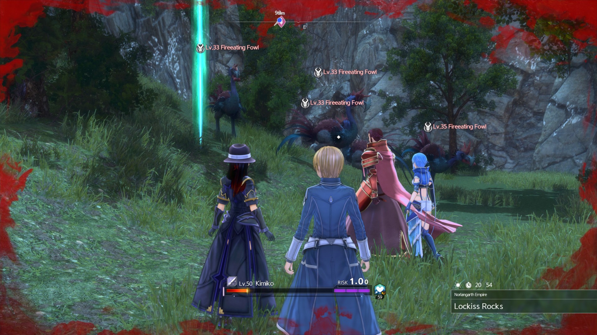Finally, Clifftop Racket is just to the south. Jump down the mountain and check out the grasslands below. There are four Fireeating Fowls here.