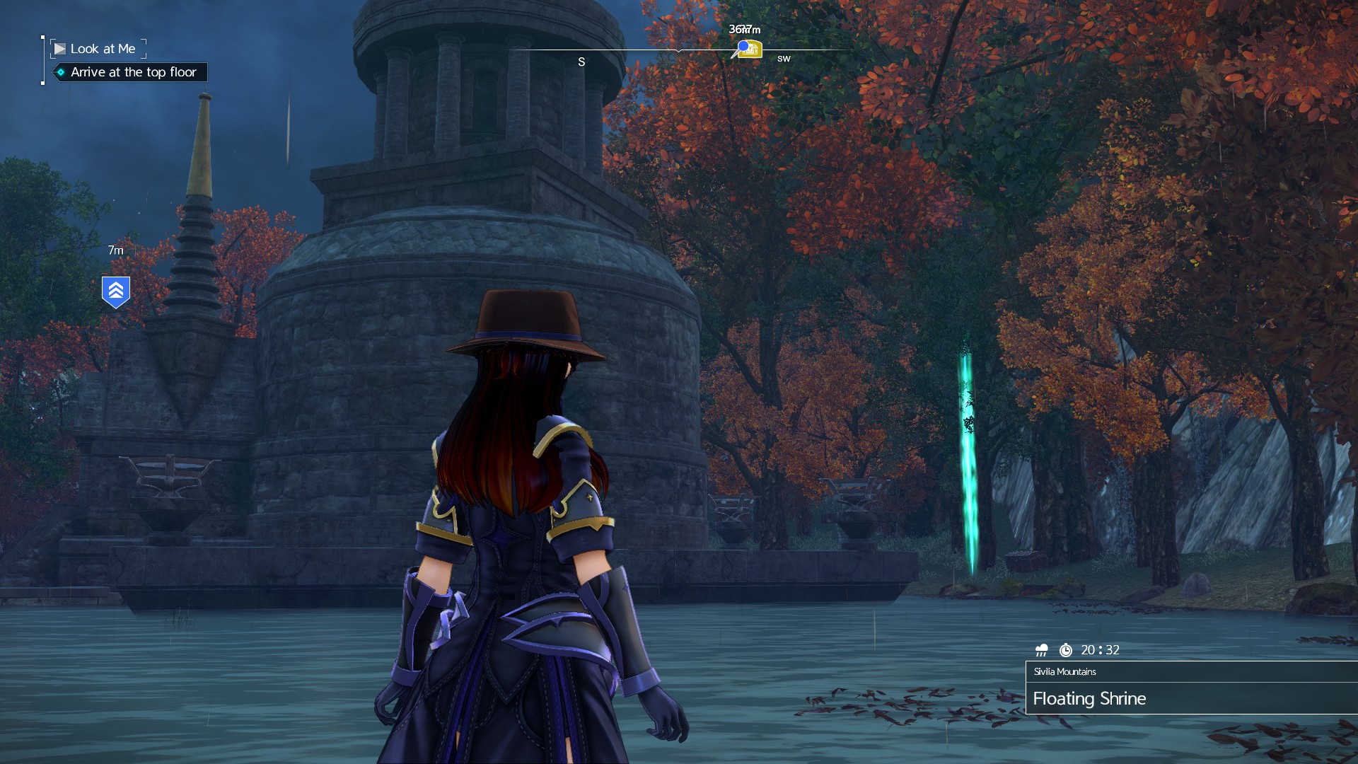 Once you’re halfway past the bridge, look east. There’s a massive gash on the ground caused by a meteor. Our goal is to head close to where it crashed.