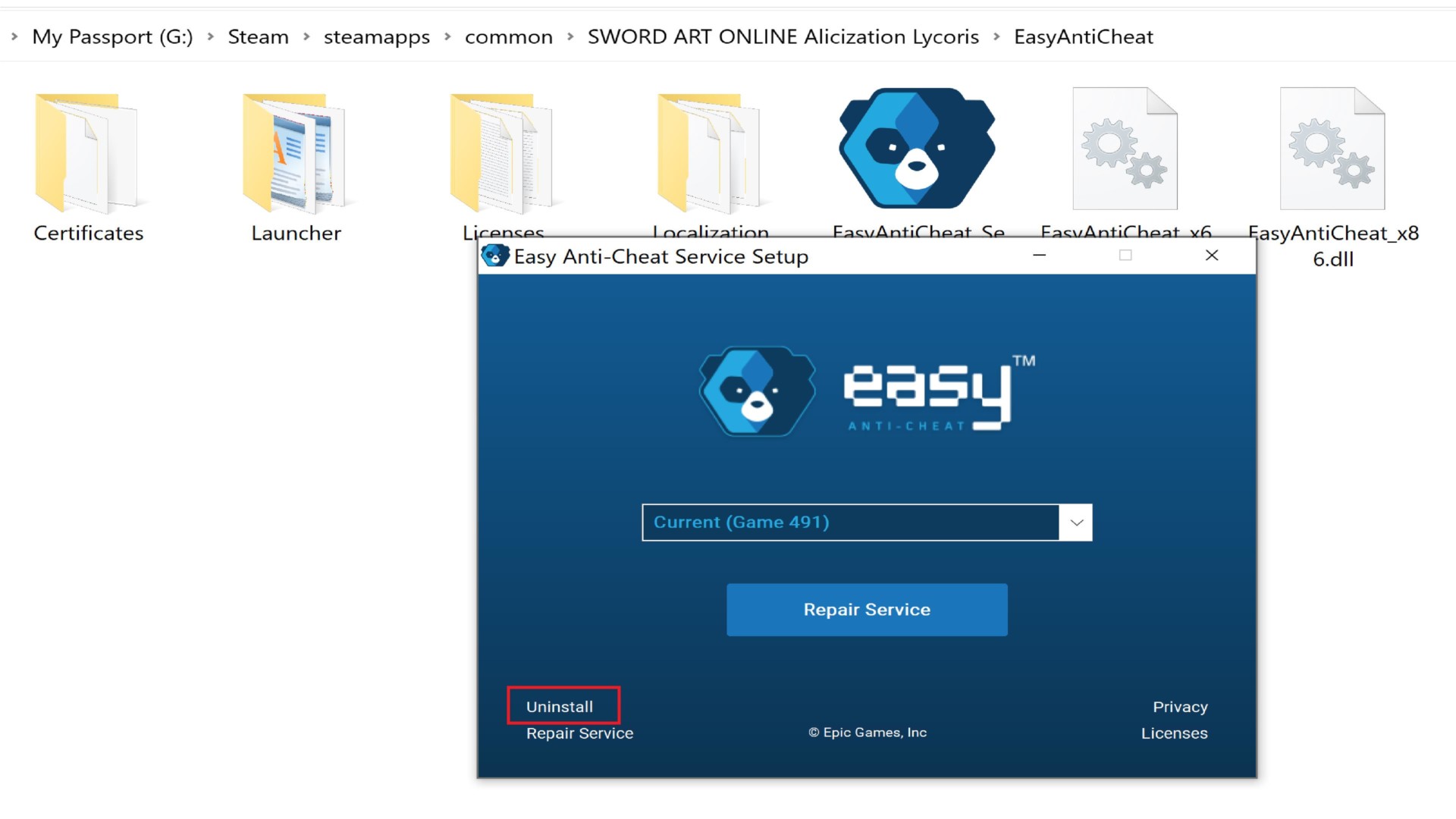 You should find the Easy Anti-Cheat folder there. Right-click on “EasyAntiCheatsetup.exe” and run it as an administrator. Then, click on “Uninstall.”
