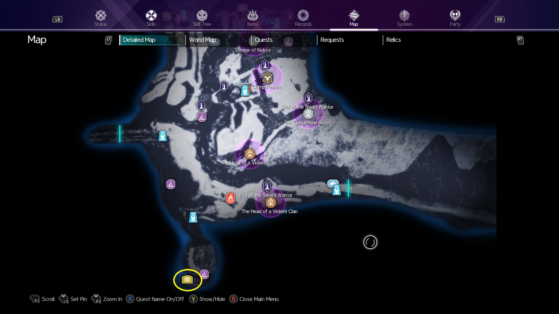 The chest is all the way to the south, so fast travel to the Wraithstream Caverns checkpoint. There’s a Clamp here and several toad mobs. You’ll probably need to eliminate all of them since aggro can be annoying.