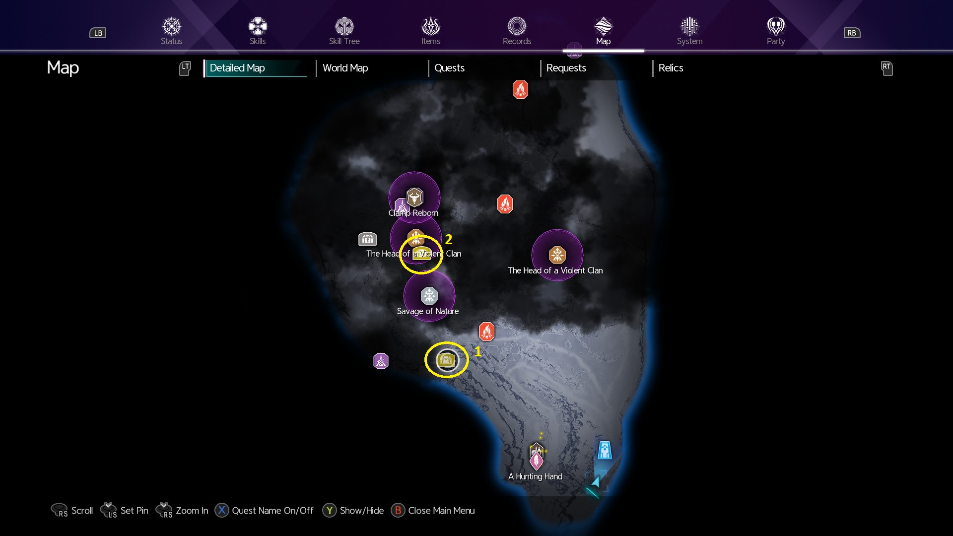 Fast travel back to the initial area’s savepoint (the one closest to the entrance). Just like before, keep going northwest. However, don’t head southwest once the mountain path starts to wind that way.