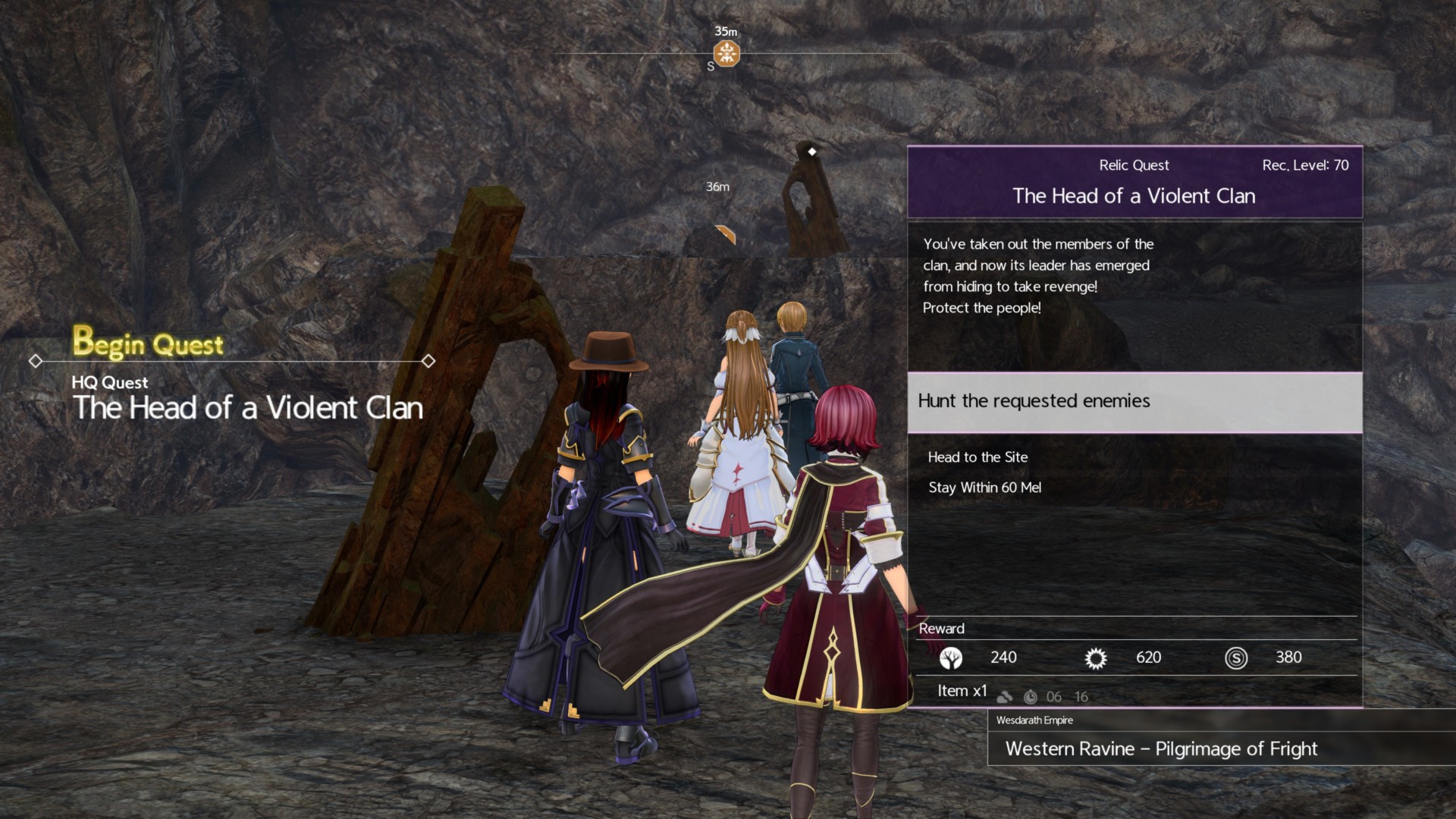 From that area, head directly north. The swampland has a Giant-Horned Fiend (level 68) and some wayfarers could assist you.