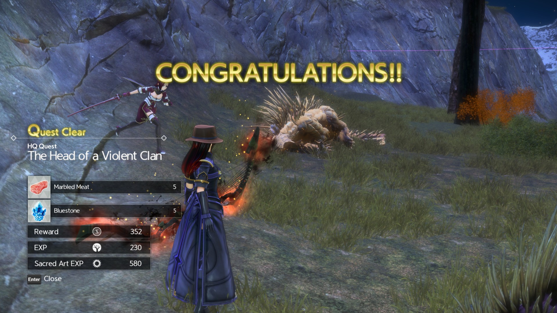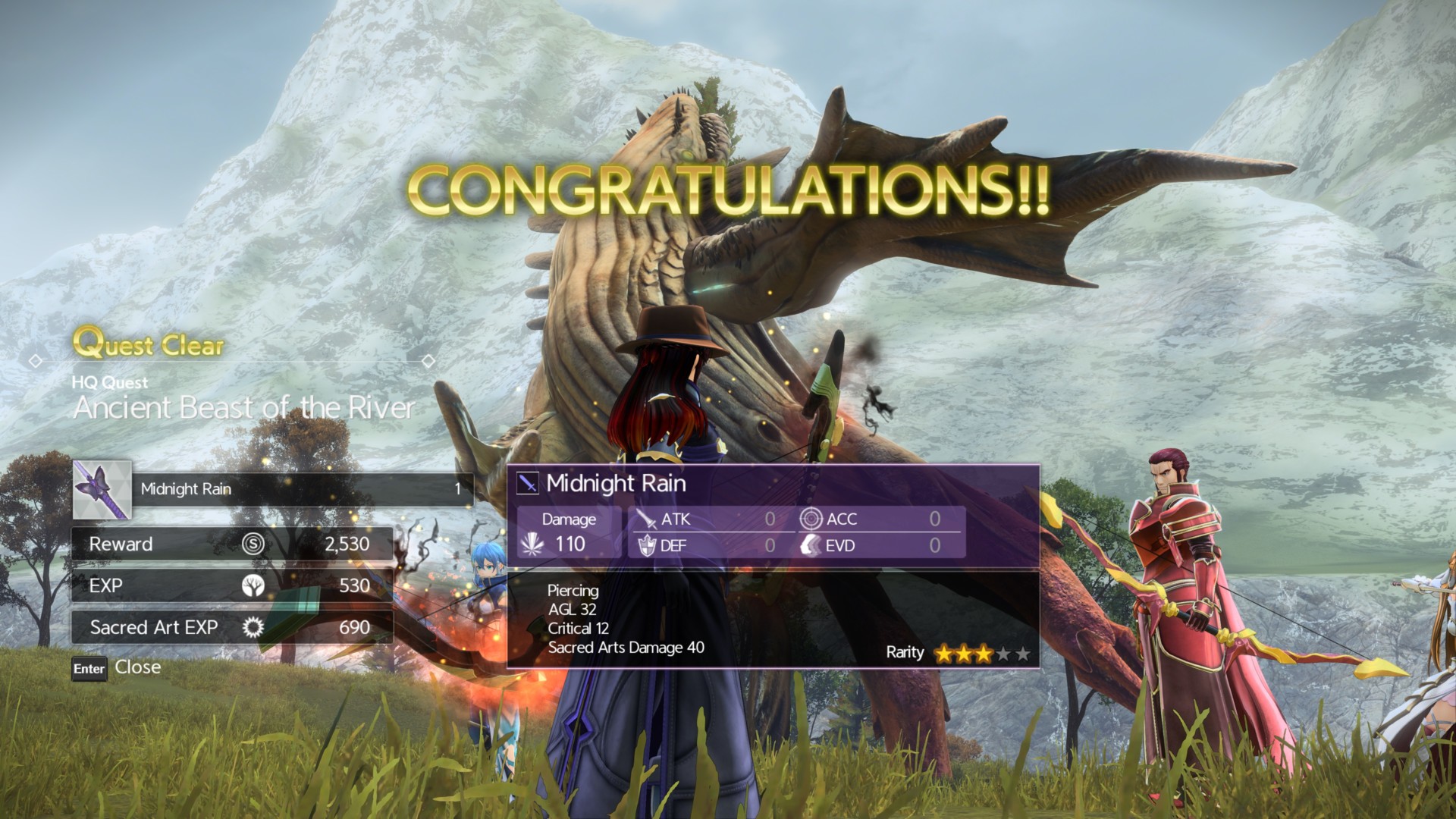 Once Skycrawl becomes Skyfall, you’ll obtain Midnight Rain, a rapier that does +110 damage, +32 AGL, +12 critical, and +40 Sacred Arts damage.