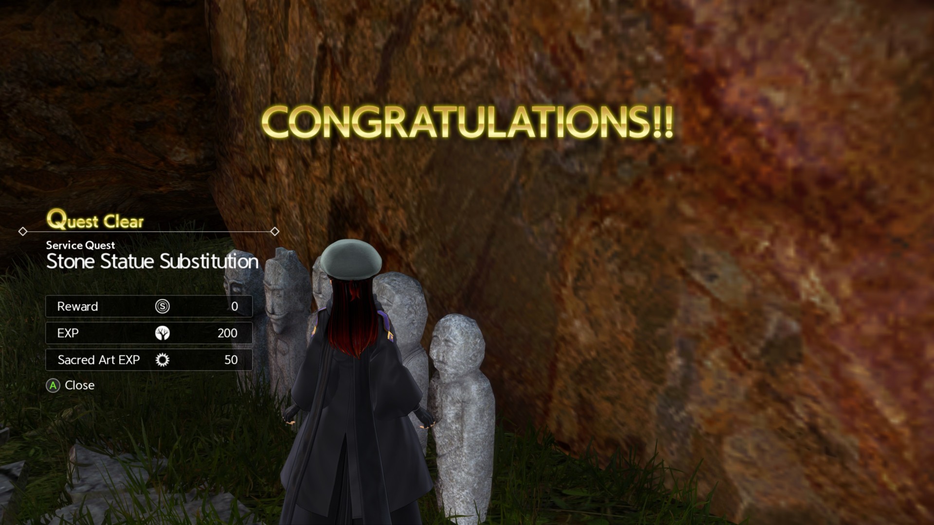 The Stone Statue Submission quest is off to the northwestern side of the mountain path. The statue will ask for a “human sacrifice.” Don’t worry, though, it’s not going to kill of Eugeo like what happened in the anime. Instead, you’ll simply need to find four other statue heads nearby.