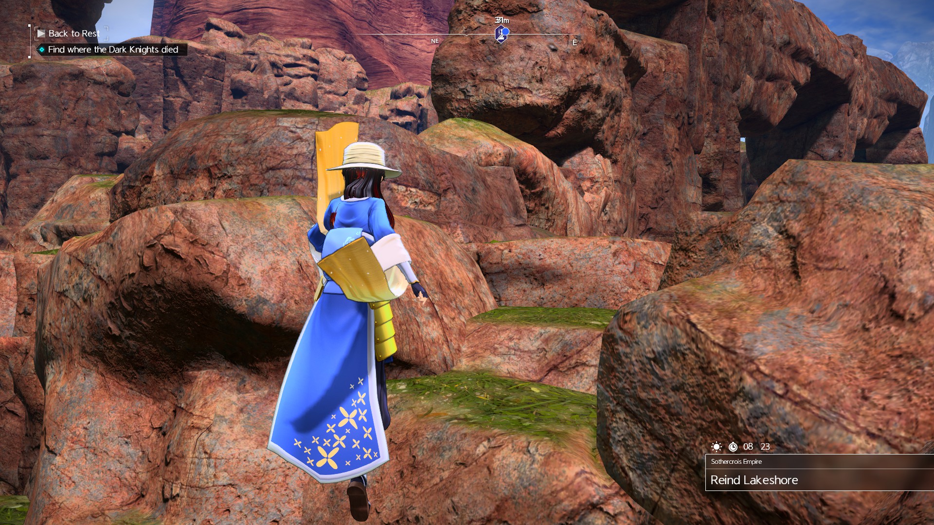 From the spawn point, look around and you’ll see a nearby rock formation.
