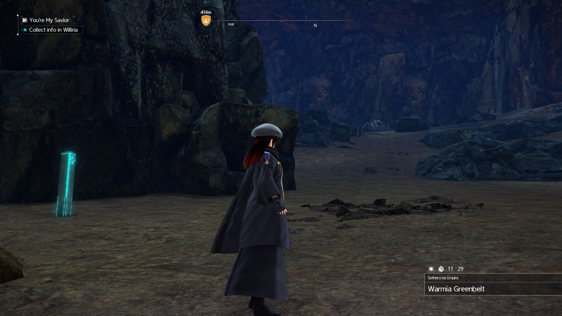 Fast travel to Spira Caverns in Warmia Greenbelt. Look around and head north.