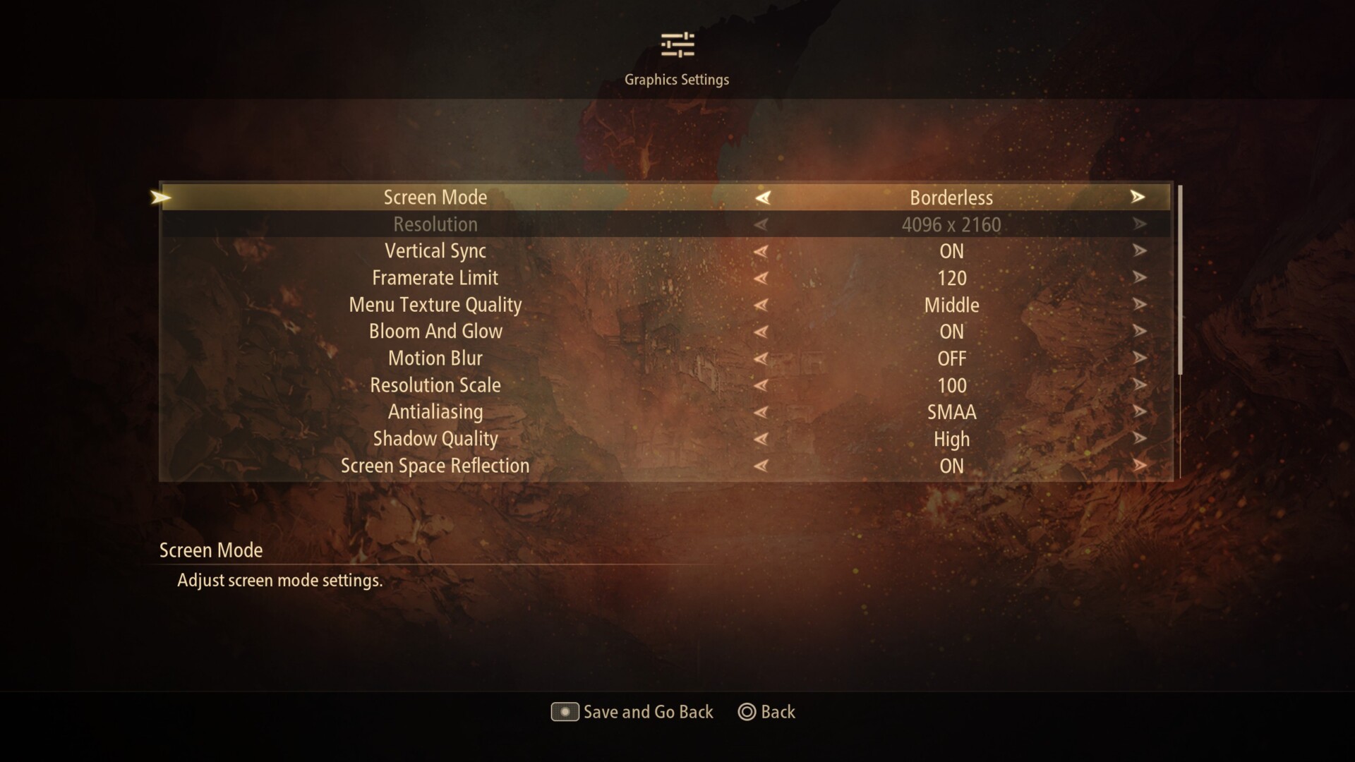 No surprises here. Borderless is in, but this is a AA game, so I wasn’t worried. I’m not sure why menu texture quality is a thing. How much strain could that possibly cause? Or perhaps it’s more of a 4K thing. I don’t know. The topmost graphics options are bloom and motion blur. Naturally, I always turn the latter off, which we all universally consider to be the right move. Well, most of us.