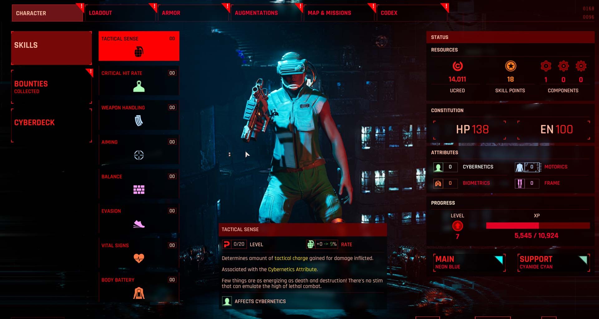 Skills are another important key to success in The Ascent and offer ways to tailor your playstyle. You can bulk up on health, critical hit chances, and weapon accuracy if you prefer to tank it or become a warp warrior that’s able to evade a fair number of attacks. My character favored the latter. You’ll need to level up to earn more skill points, but also to keep pace with the higher-level enemies throughout the campaign.