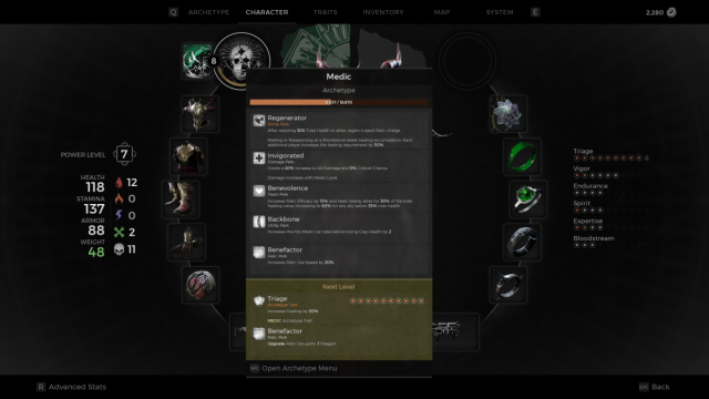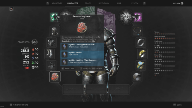 The focus of this Remnant 2 Medic build is on having a huge amount of health and also being able to pop your Relic Heart all the time. The key to being successful with this build is always using your Relic heart when you have full health. This will mean that all the healing you receive is added as overhealing, ensuring you never really touch your core life. This is due to the Resonating heart trait.