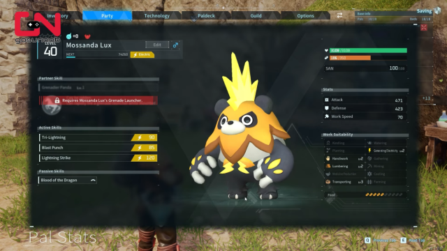 Maybe not everyone’s first choice for fusion in Palworld, but it really shouldn’t be overlooked. You may not want to keep it in your lineup for battle, but when Massanda Lux is on your farm, it’s a real workhorse.
