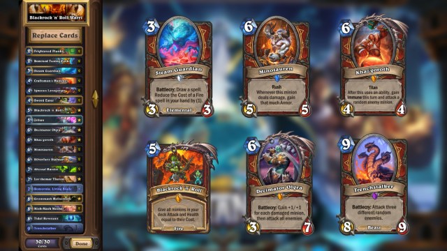 If you play Steam Guardian on turn three, you can then play Blackrock ‘n’ Roll on turn four thanks to the discount, before proceeding to absolutely steamroll your opponent thanks to the huge stat advantage the spell gives you. Minions like Decimator Olgra, Trenchstalker, and Mish-Mash Mosher become board clears and burst damage sources rolled into one, while Minotauren and Zilliax serve as crucial comeback tools to recover from your slow early game, gaining you huge amounts of health while removing Minions in the process.