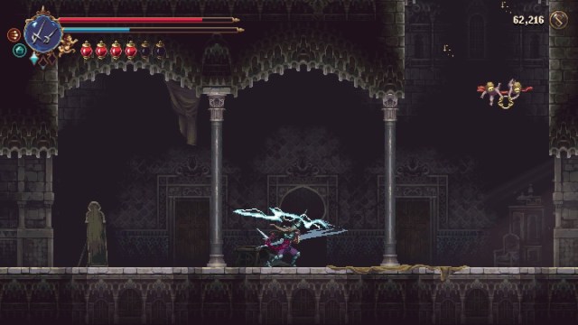 A weapon with a very high skill ceiling and a low skill floor, Sarmiento and Centella slots nicely into the middle of the pack in Blasphemous 2. Its rapid attack speed lets you squeeze in hits where the other weapons couldn’t, letting you quickly build up the markers necessary to get Verdadera Destreza going. Once in this state, the extra lightning damage you’ll deal will make up for the low base damage of the swords, making the pair as strong as the other options, but much, much faster.