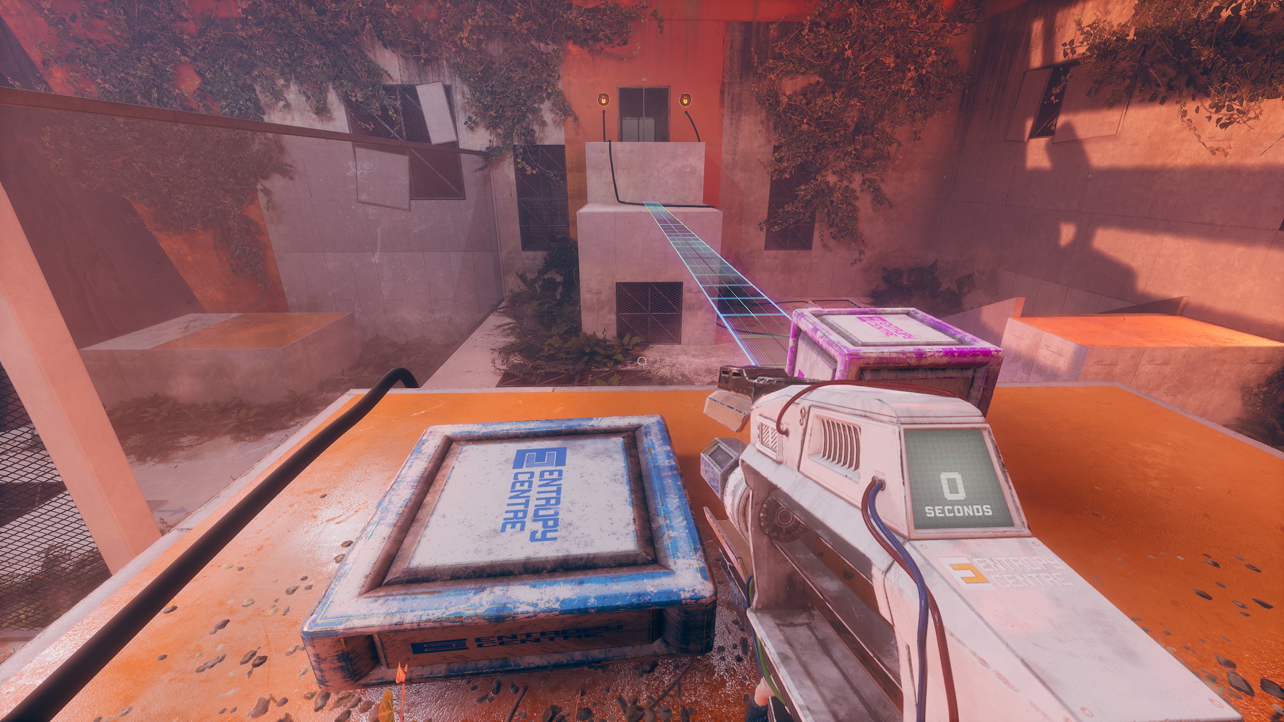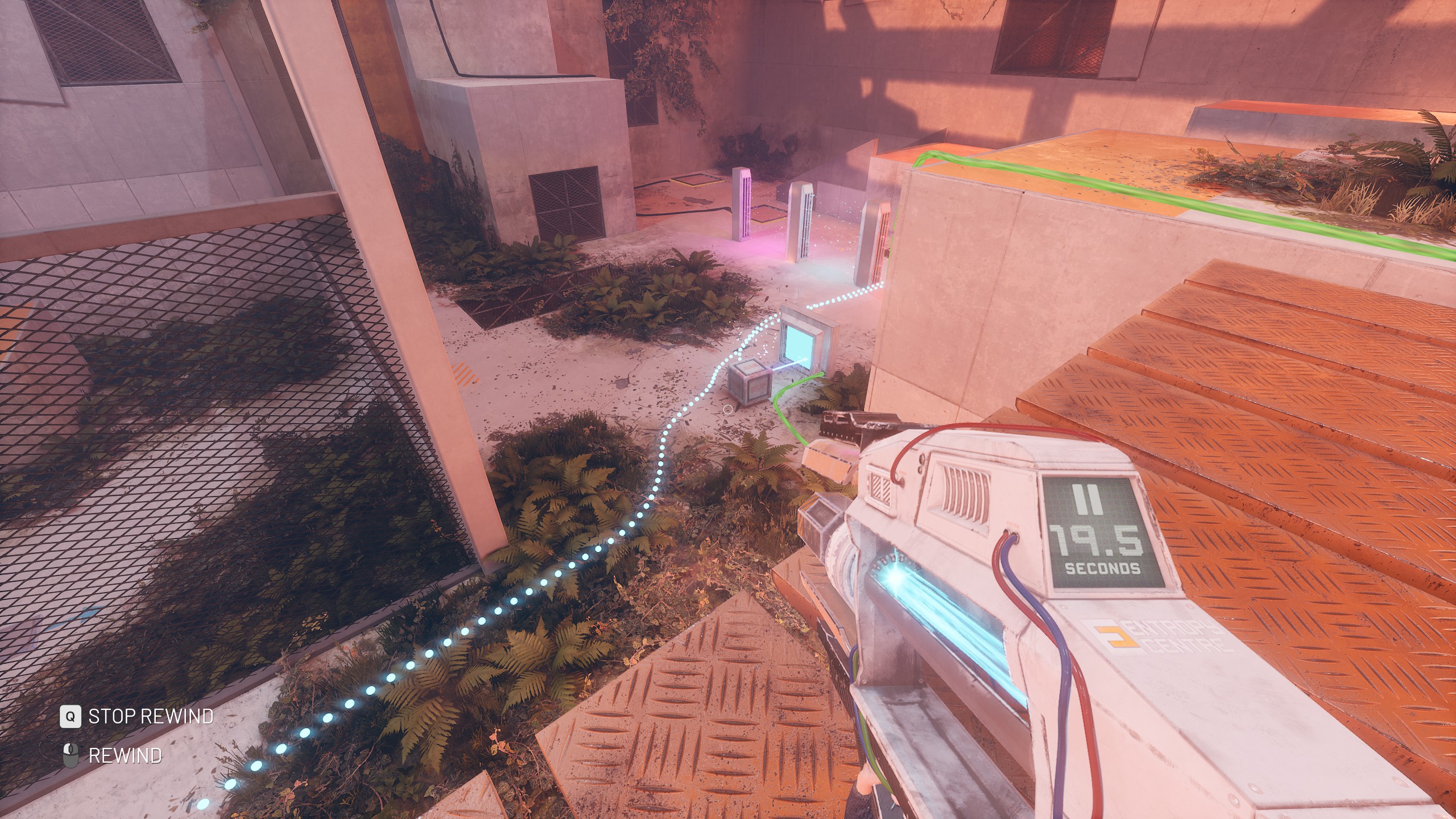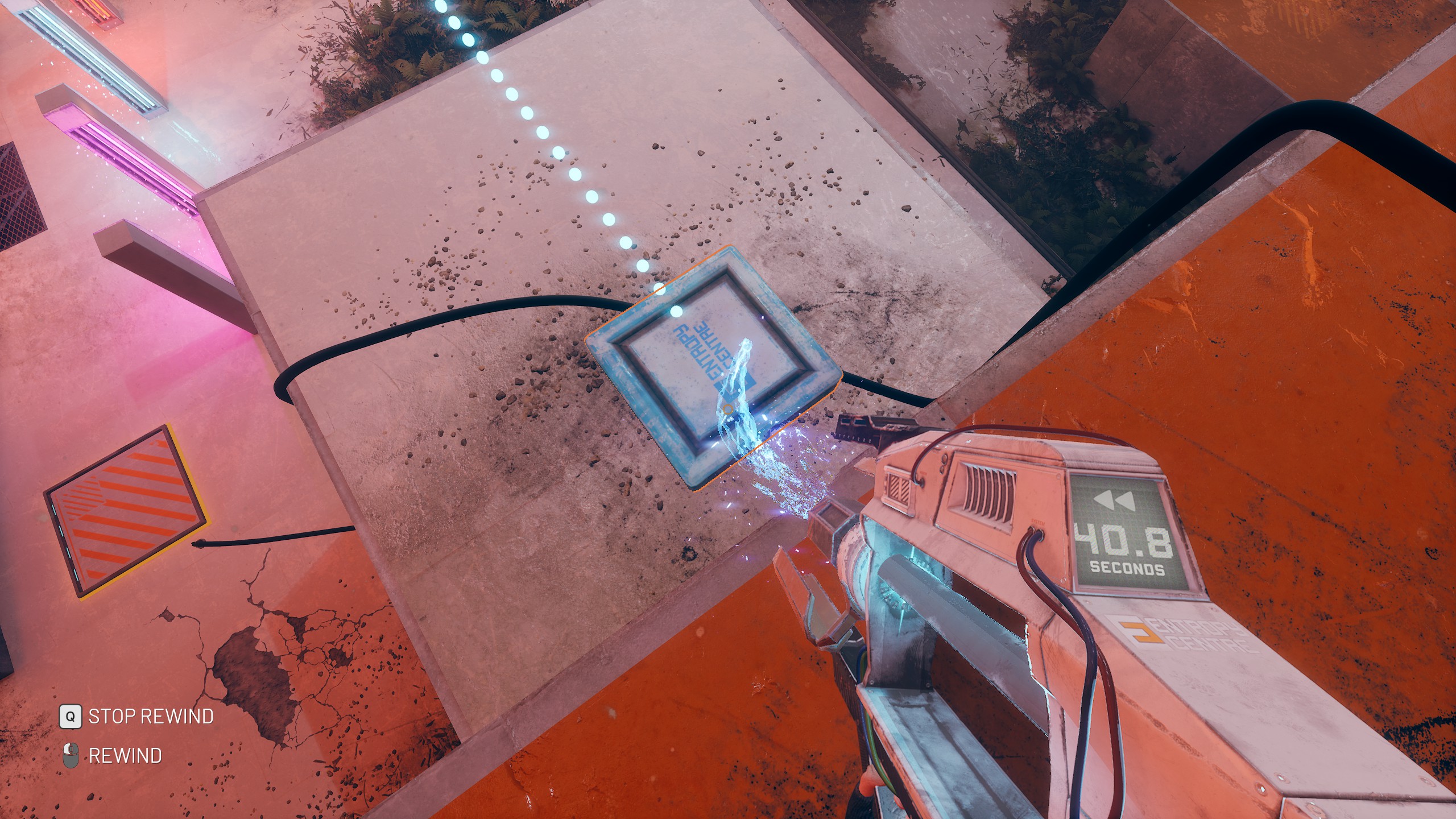 Make sure and reset their rewinds with the ‘R key’ once they’re in position. Place the jump cube at the edge where you used it to jump across before. Pick the bridge box up and, while holding it, jump across the gap. Then place the bridge cube to go back and get the bridge box. Repeat this again for the next gap.