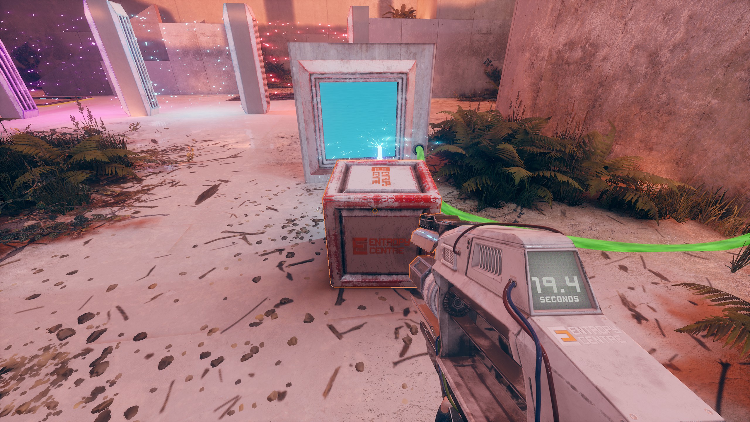 First, grab the cube and turn it into a bridge cube with the purple field before placing it like you see in the image below. Then delete the rewinds with the ‘R key.’