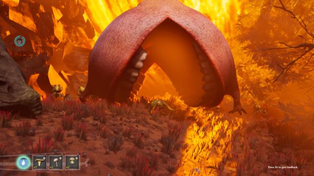 Any of The Eternal Cylinder‘s transformative items have a special icon on them to let you know that they’re extra useful. There’s a variety of these. You’ll be able to ingest items that mutate your critters and increase their storage capacity, give them extra jump height, or allow them to glow in the dark. Certain types of transformations stack, so it’s beneficial to keep an eye out and give your whole team multiple abilities each. You’ll need to be careful, though, as they can die. But you can save and load at any time, so there’s far less risk involved.