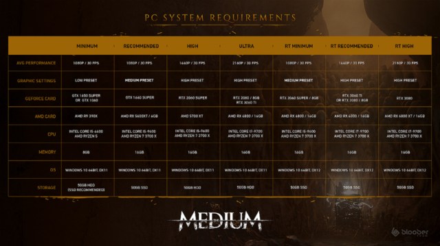 These system requirements are from The Medium‘s Steam store page. This is just the gist. The image below shows a more detailed breakdown that we reported last week.